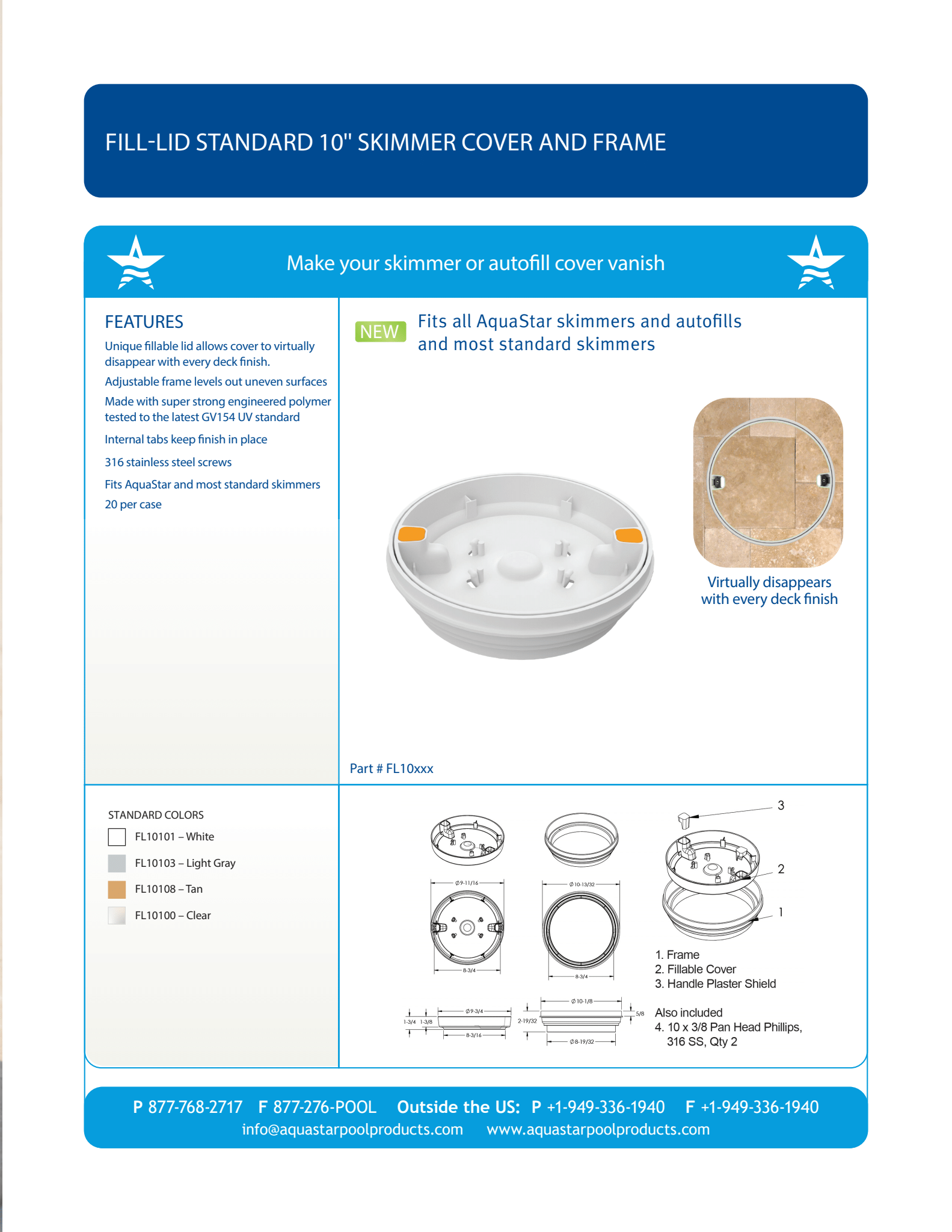 - Fits AquaStar and most standard skimmers (Sta-Rite/Pentair)