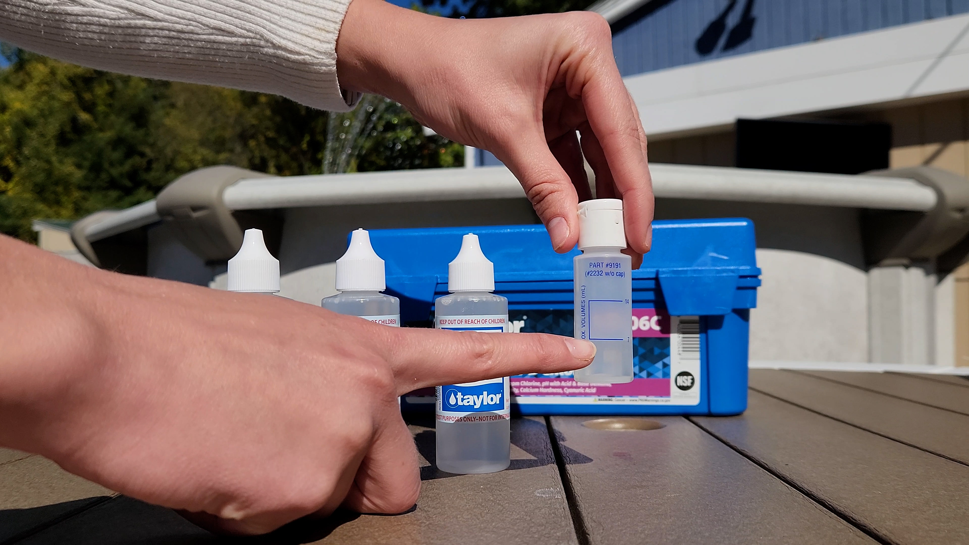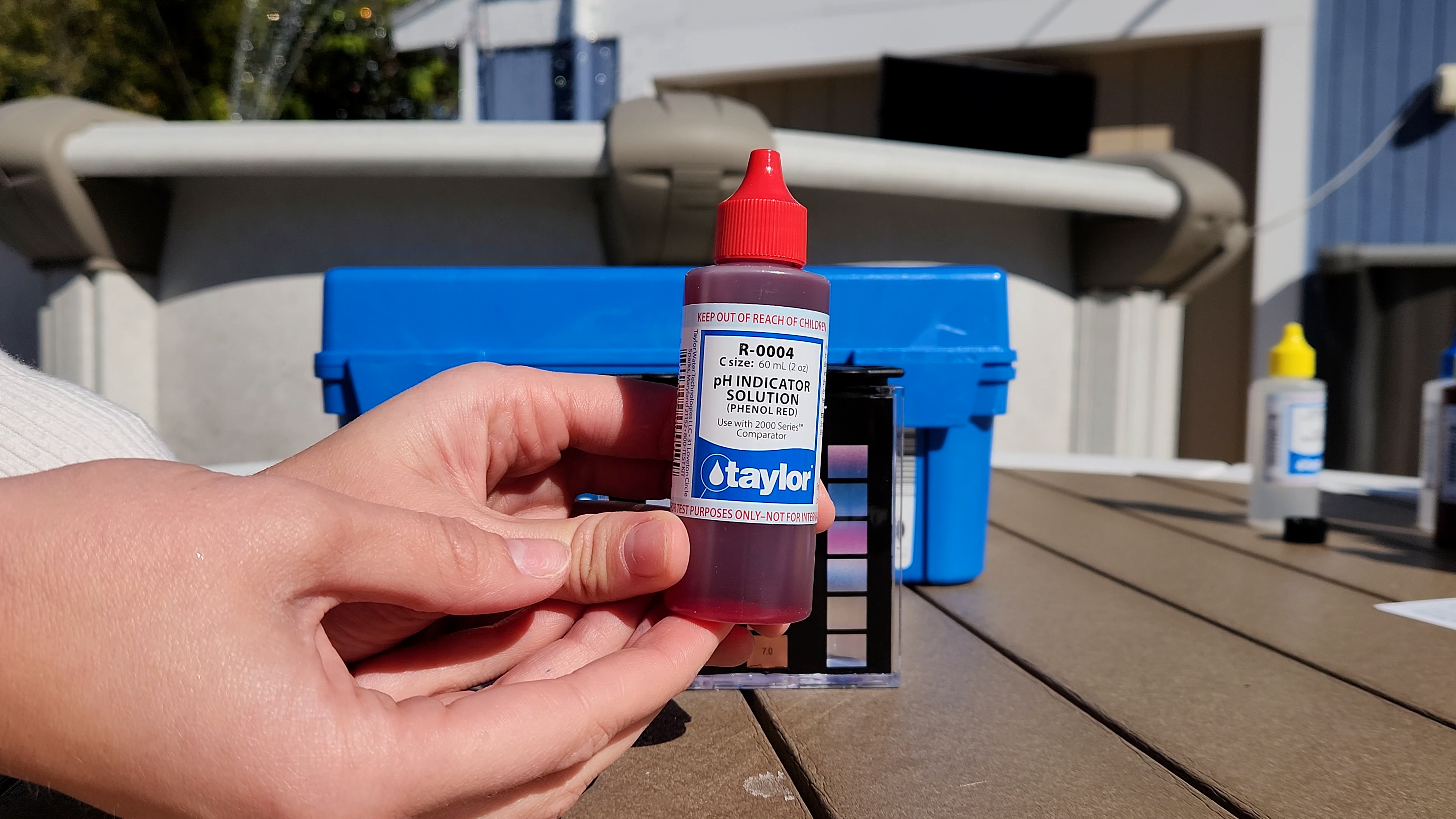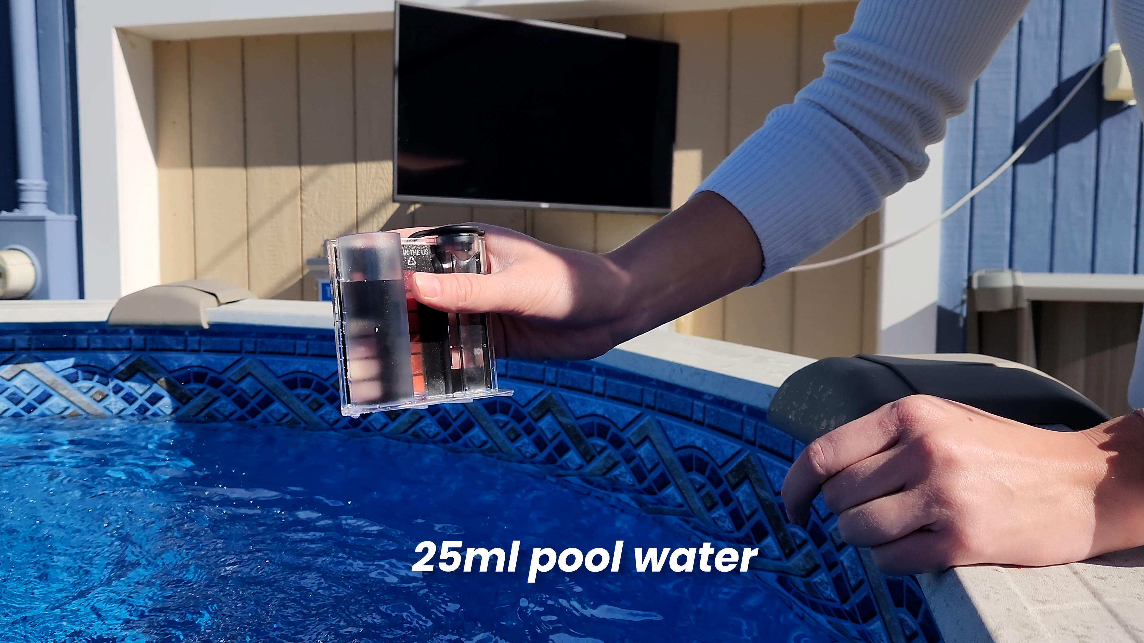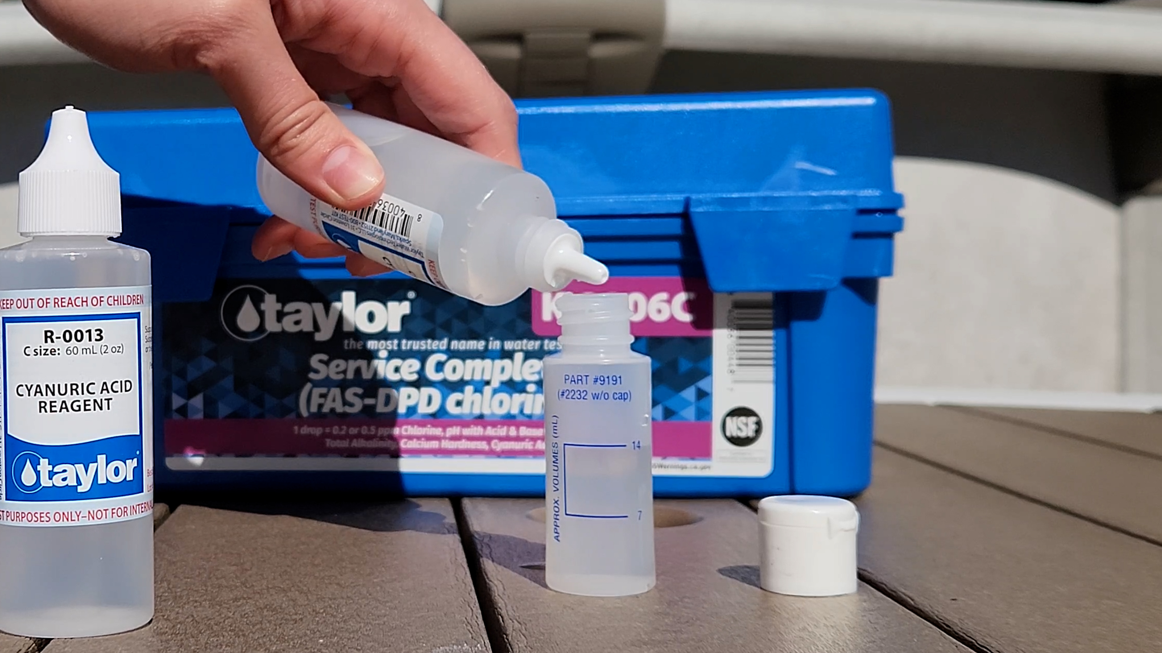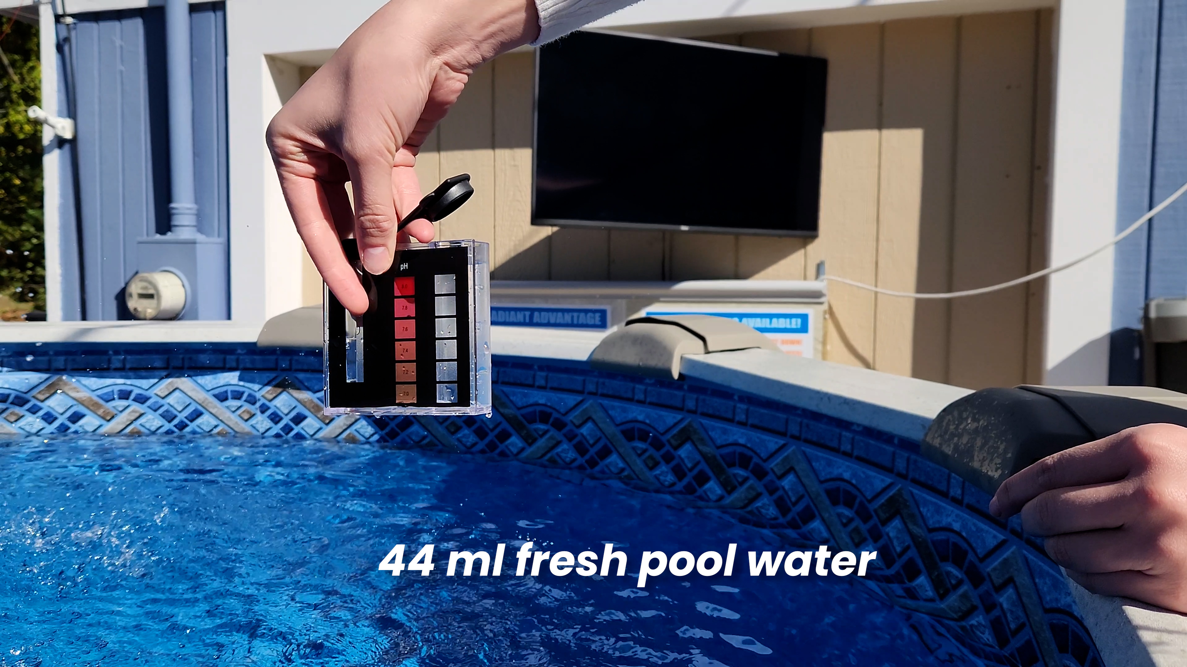 - Rinse the test tube and fill to 44 mL with fresh pool water