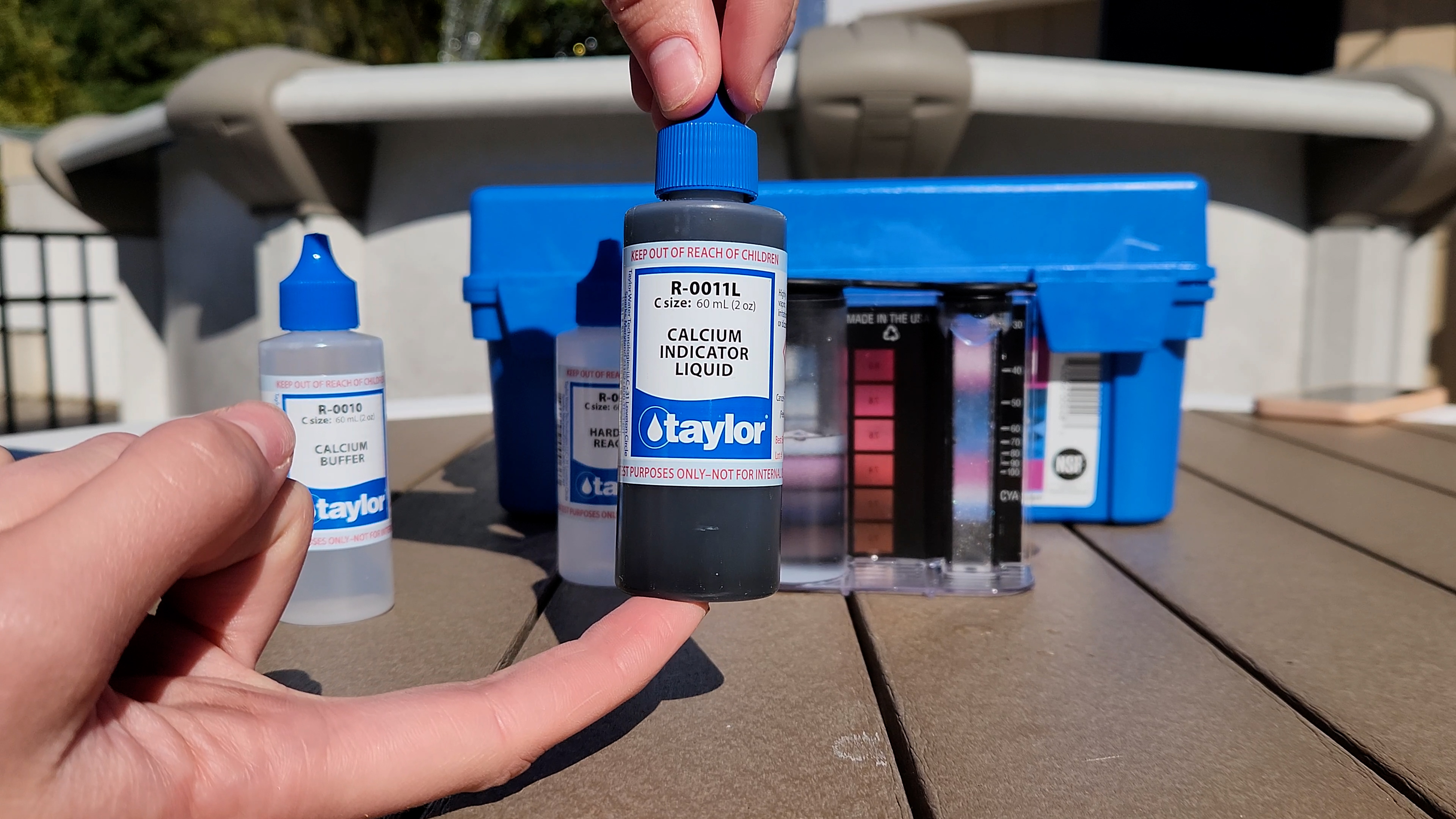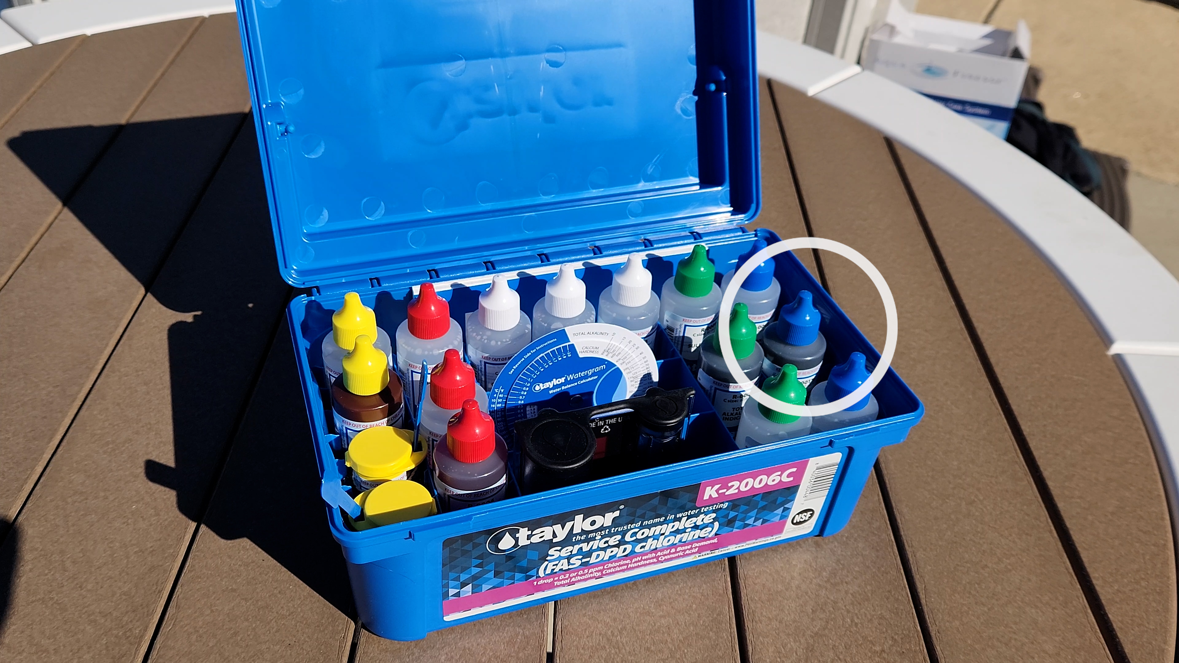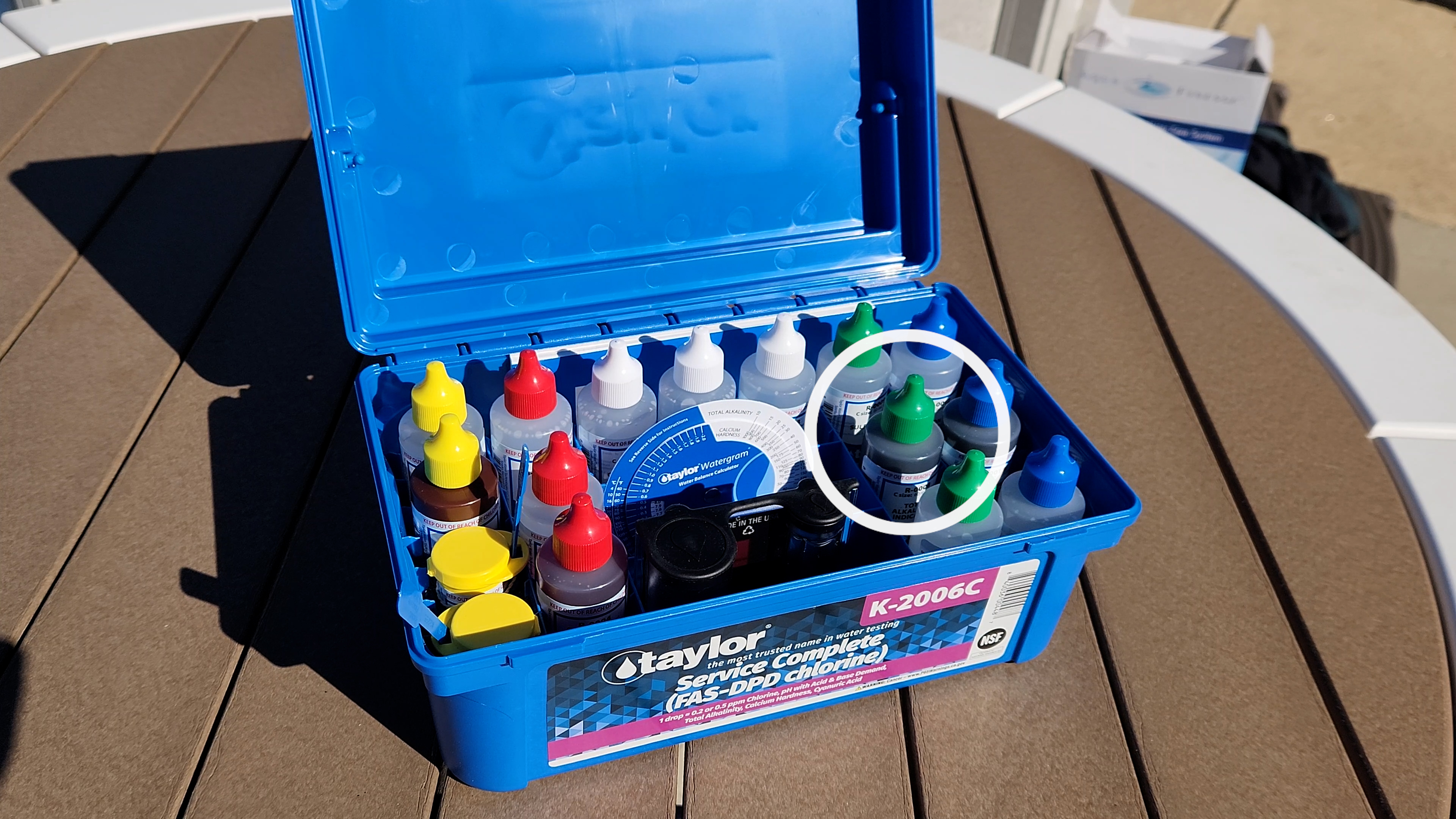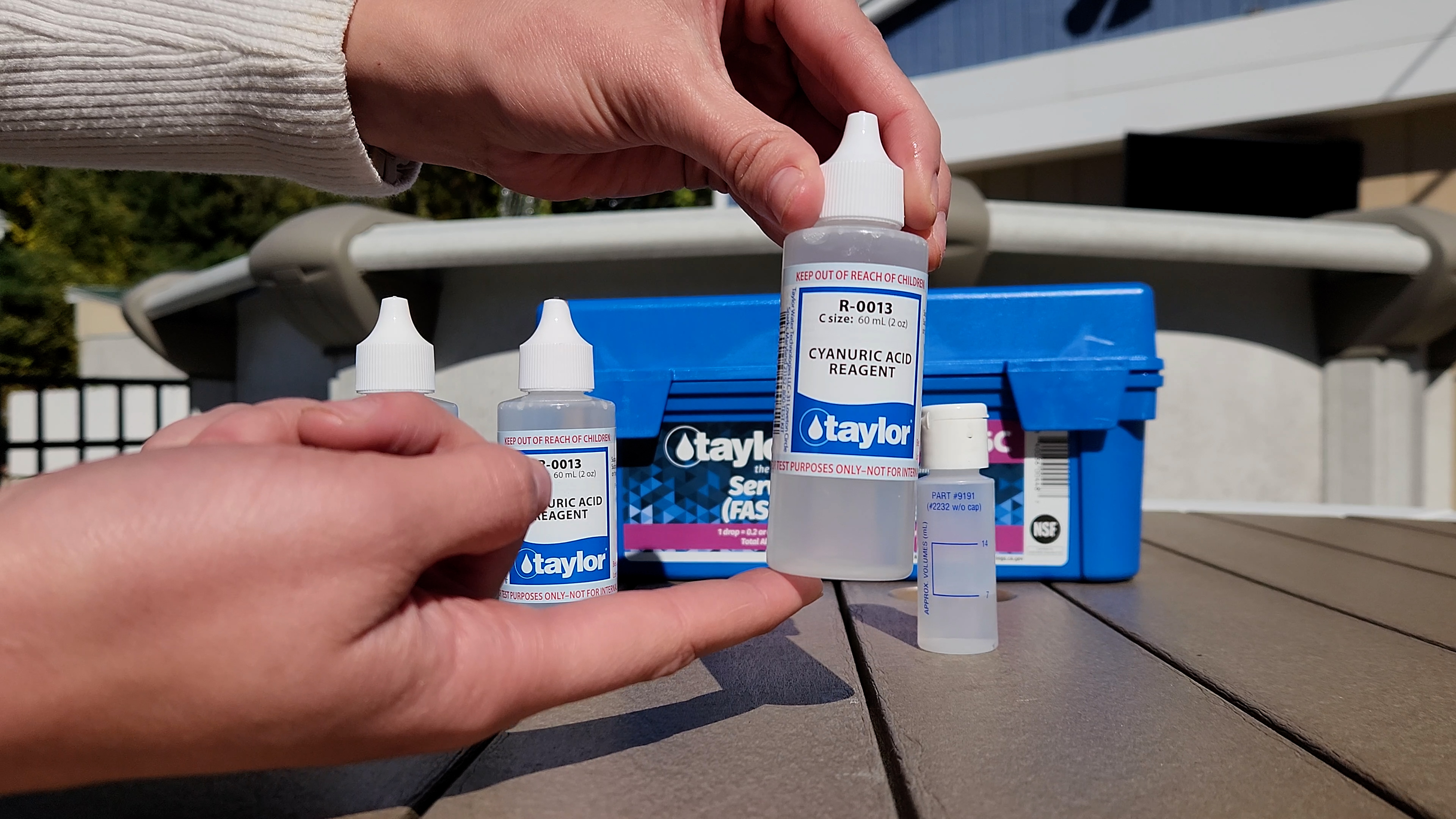 Used to test how much calcium is in the water. - White caps = Cyanuric Acid (Stabilizer)