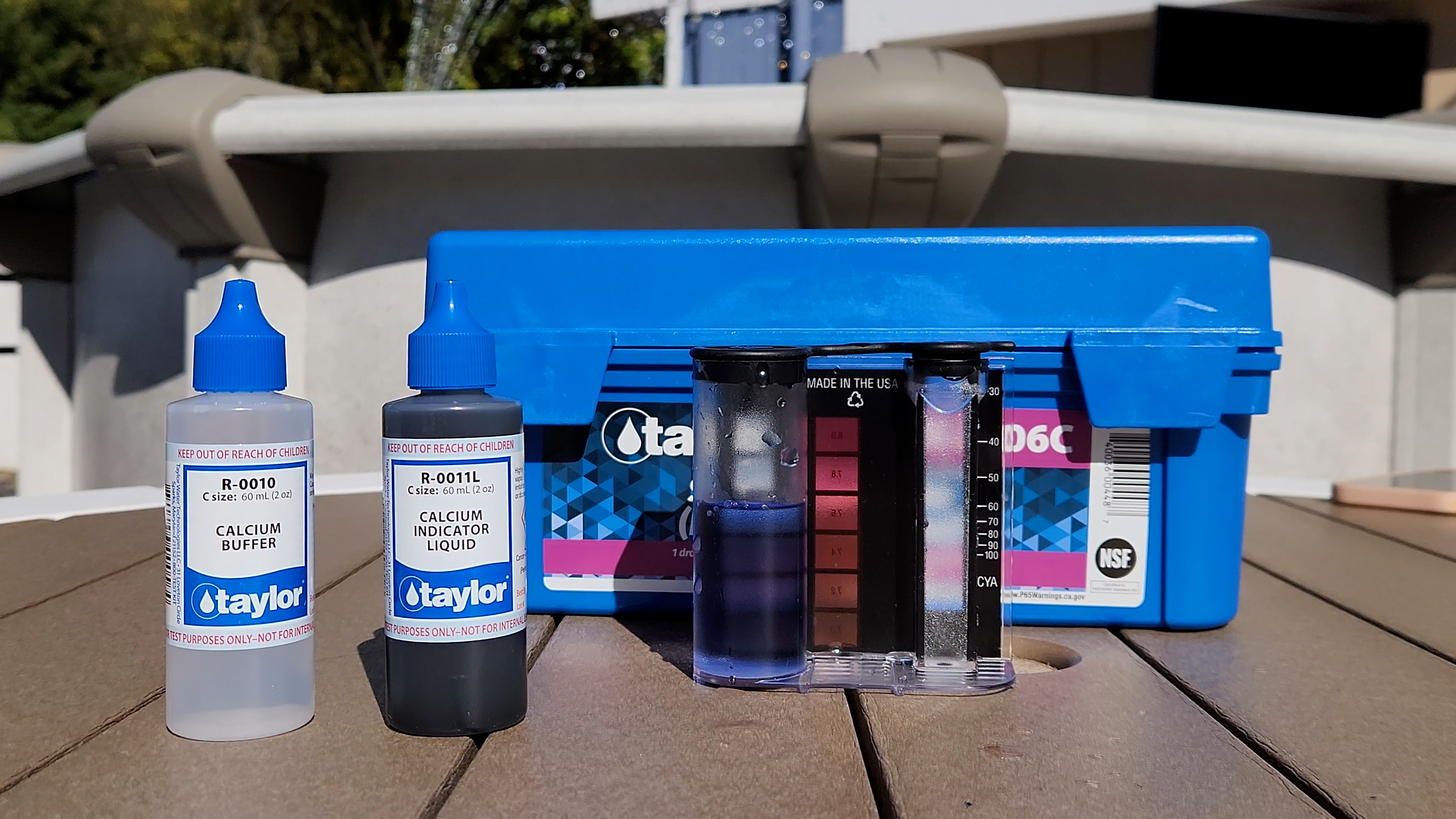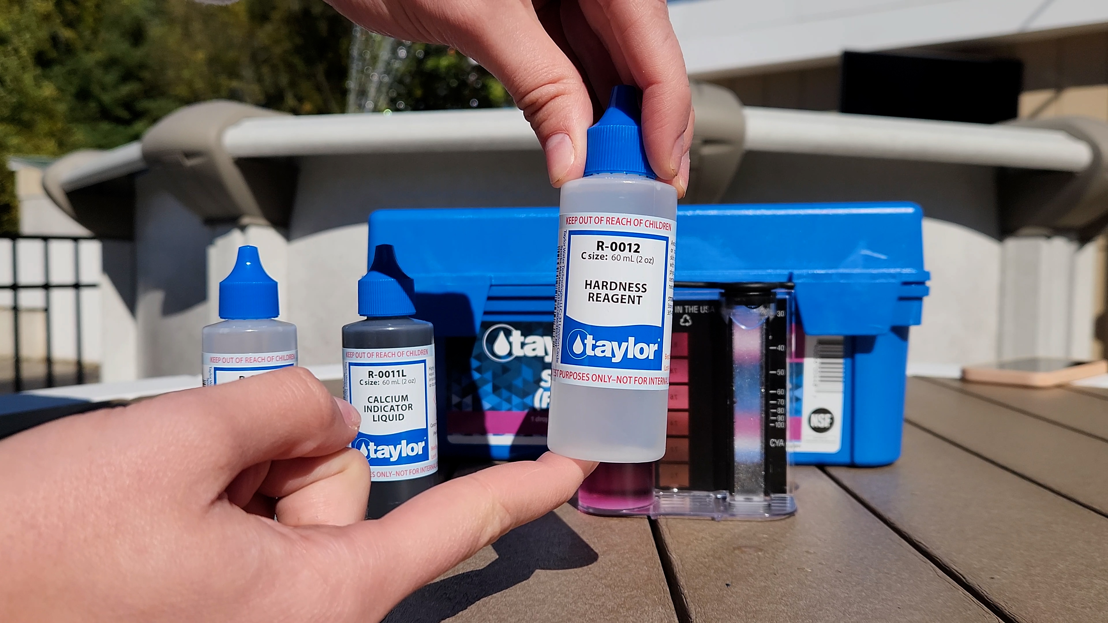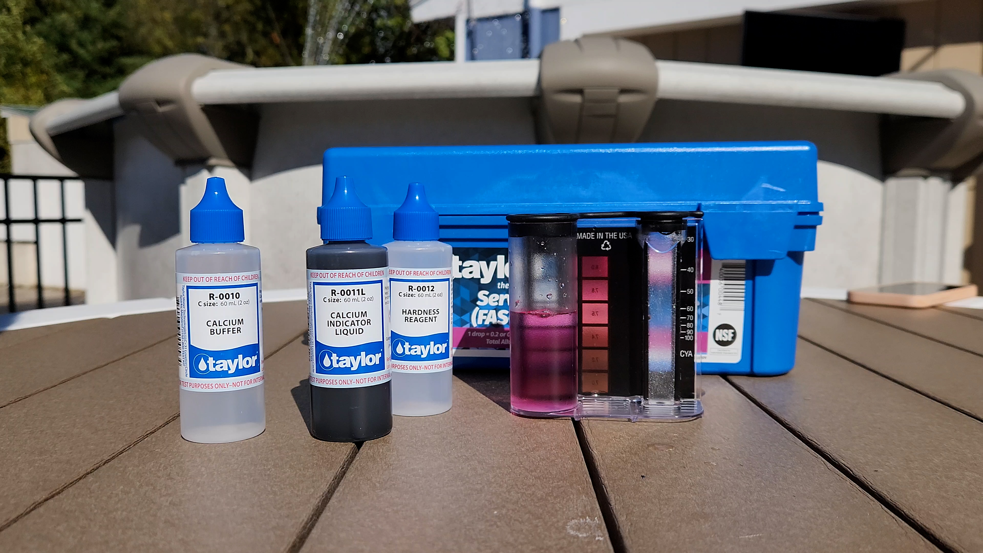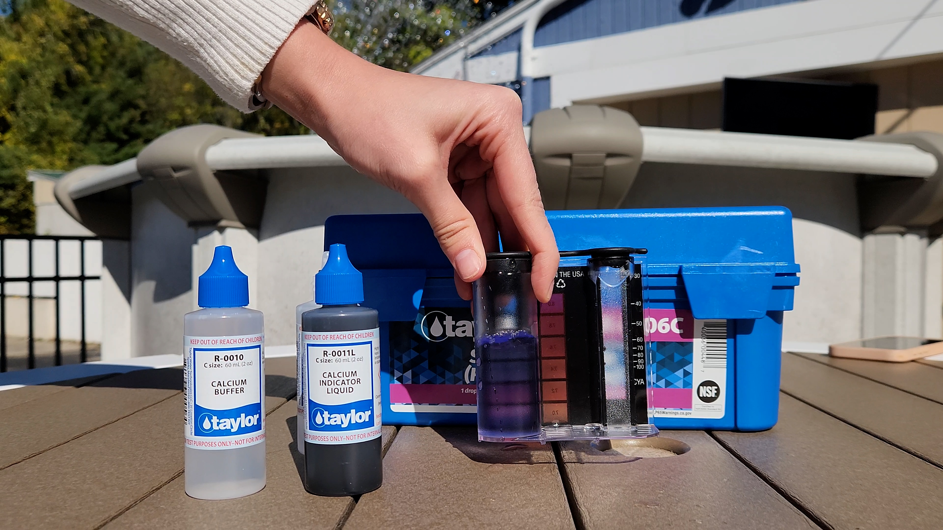 Used to test how much calcium is in the water. - White caps = Cyanuric Acid (Stabilizer)
