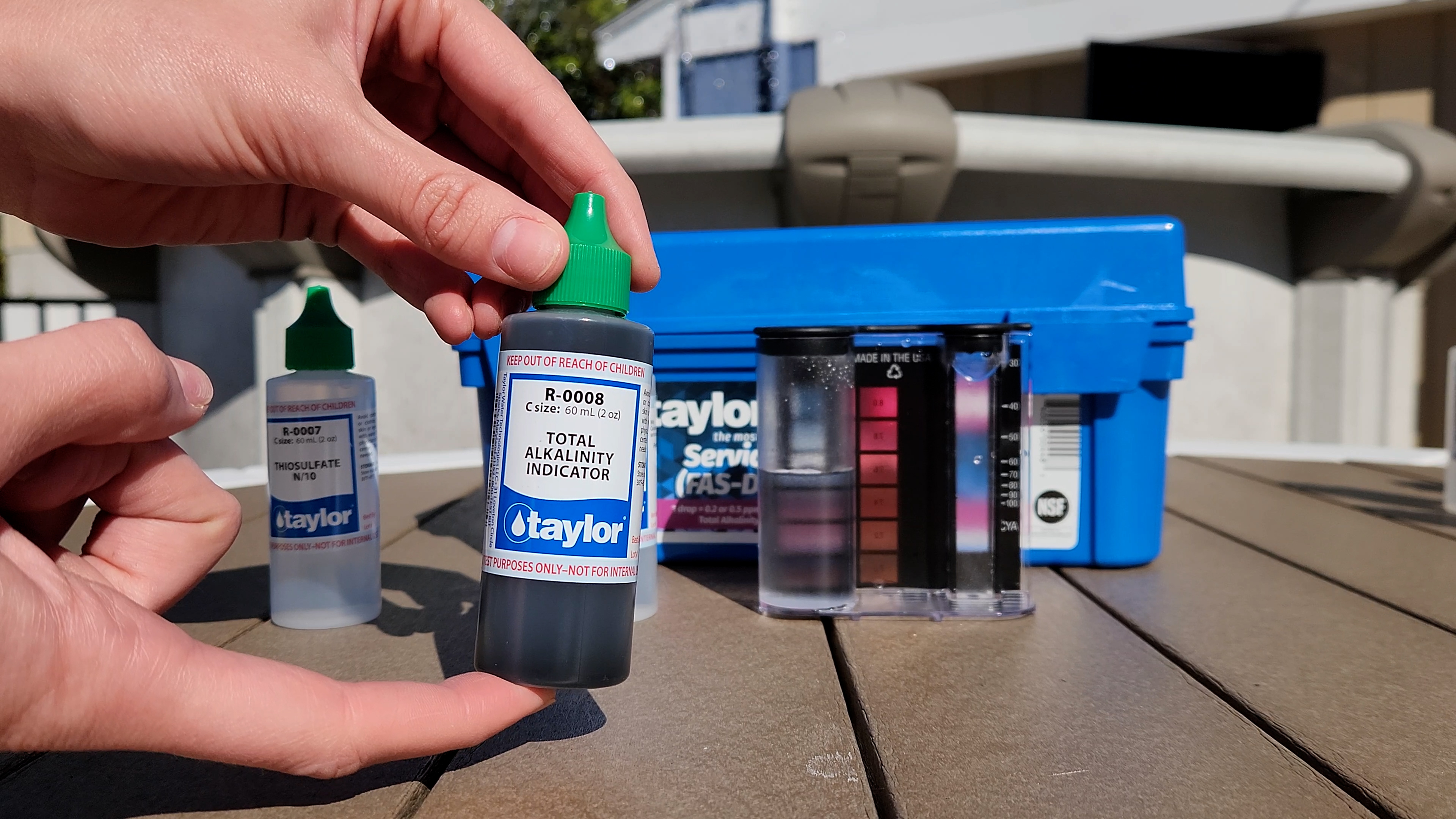 - Add 5 drops of R-0008 (Alkalinity Indicator) and swirl