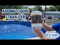 - Slowly add entire gallon of EZ-Pour Stabilizer into the pool in front of a return jet.